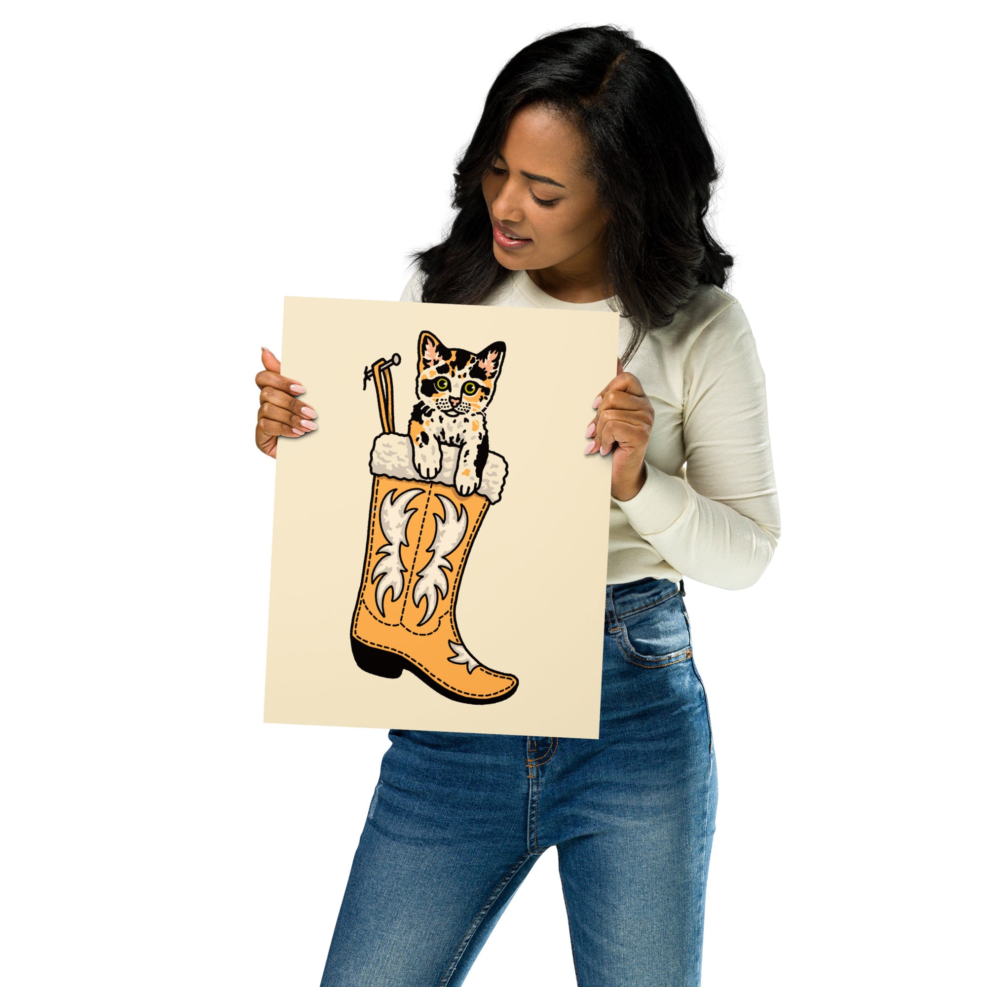 Calico Christmas Kitten Giclée Print
